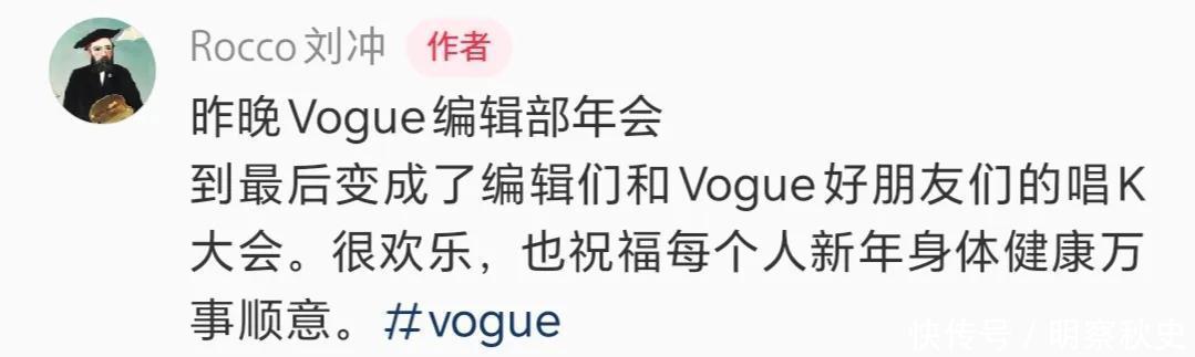 今天(1月24日),vogue剪辑总监刘冲晒出了年会的一些动态。他写谈“vogue剪辑部年会到临了酿成了剪辑们和vogue好一又友们的唱K大会。”