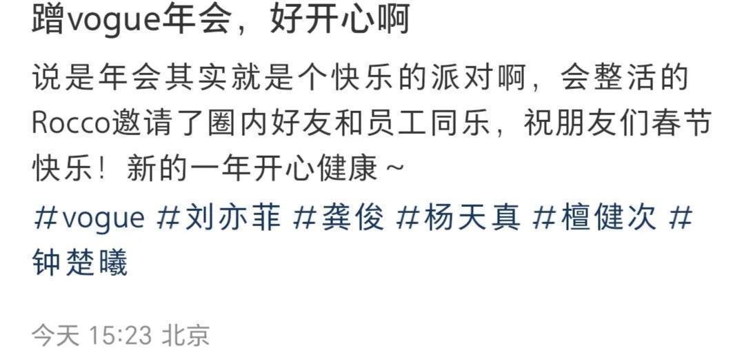同日,也有一位参加了vogue年会的网友发文称,好感奋,说此次年会等于个餍足的派对,并共享了一些相片。