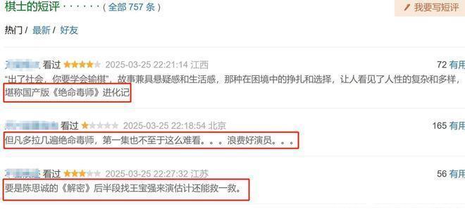 被吐槽是:“国产版《绝命毒师》进化记”、“不如径直更名《绝命棋师》”等等言论。