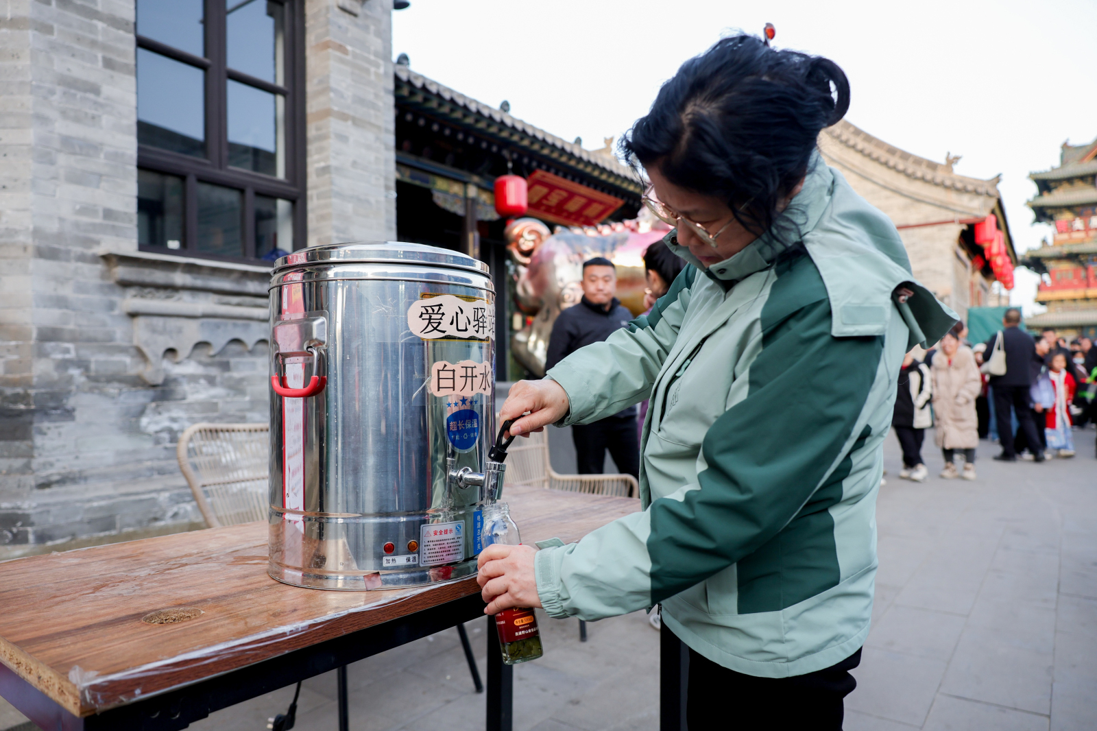 为提高旅客旅游体验,太原古县城推出一系列暖心举措:景区在主街上增设多处取暖样式,12座“暖心驿站”全天候洞开,提供免费沸水和暖贴。所有这个词商户免费为旅客提供沸水事业。