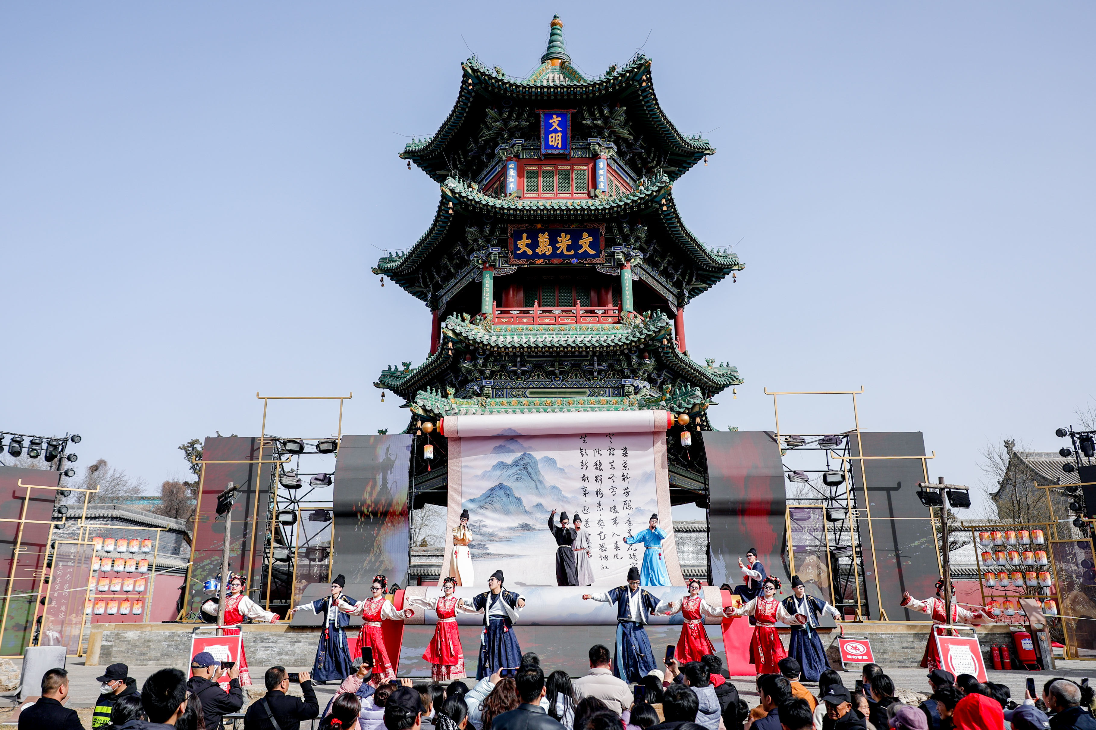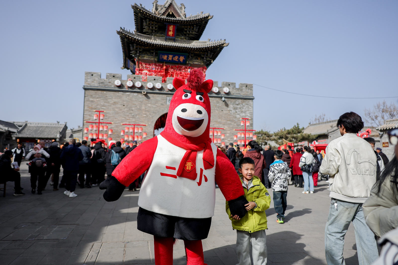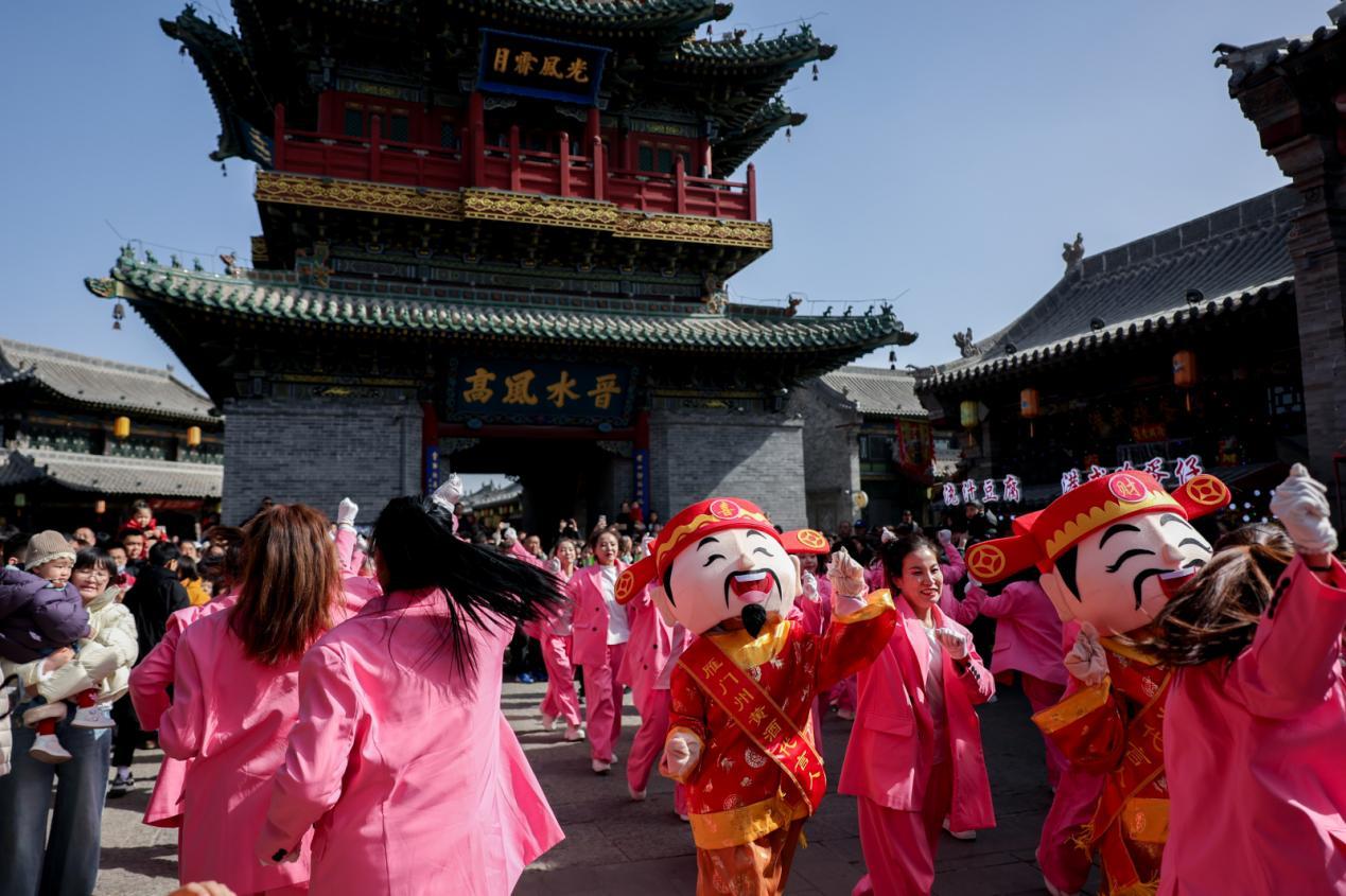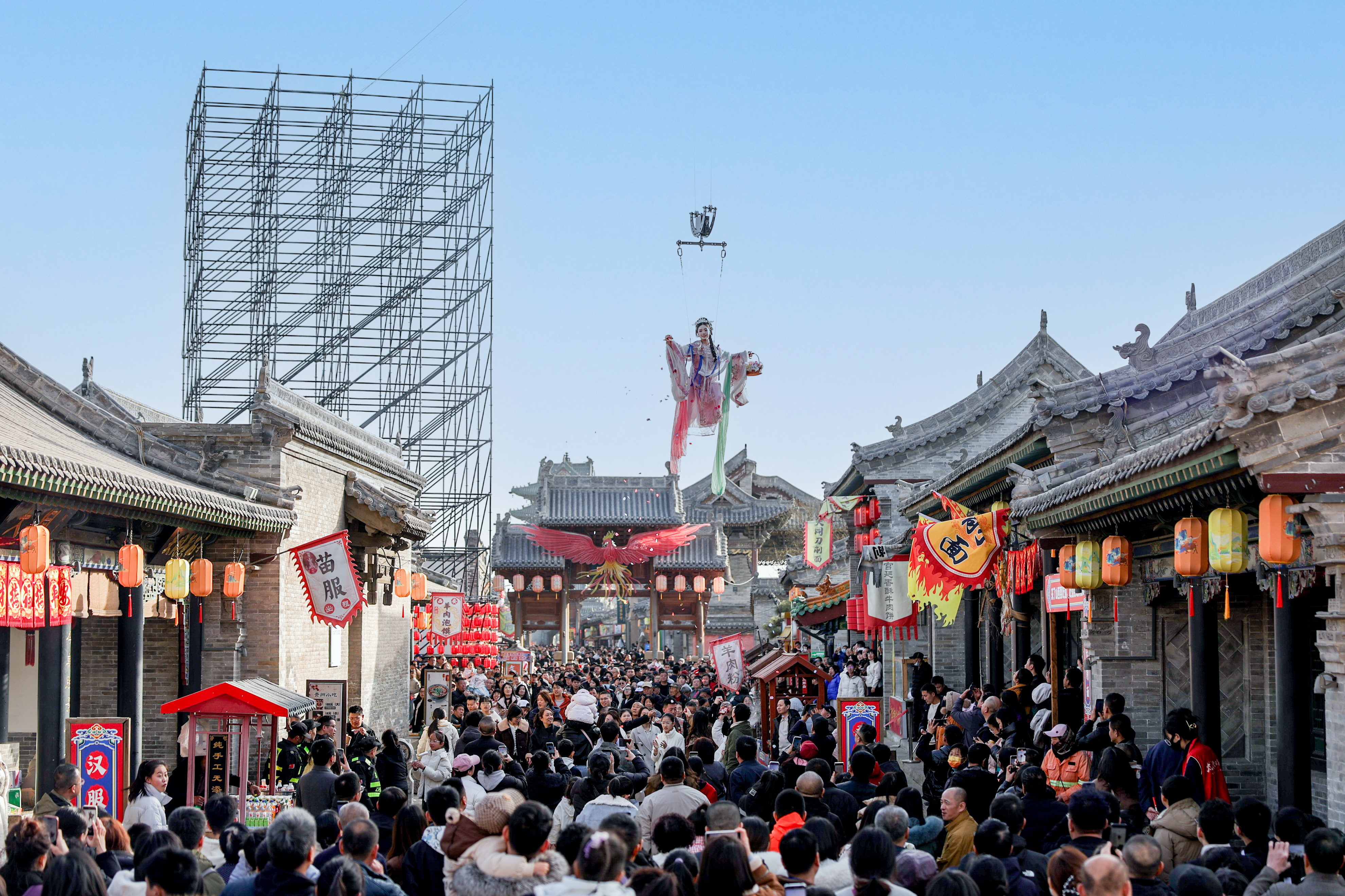“传说本年无谓预约、免费看饰演,专程过来感受一下年味。”来自吕梁交城的旅客郭女士说,一家东谈主刚进城门就被骚动的氛围感染,孩子们迫不足待想去看少女飞天饰演。
