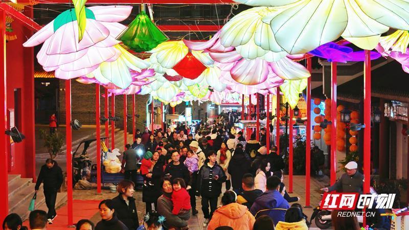 瑰丽的花灯竹苞松茂。君山岛举办新春庙会,旅客参与各式传统游戏和手工艺体验活动;汴河街春节庙会系列活动,歌舞饰演、戏曲、篝火晚会、玩龙舞狮、竹马戏等文化饰演;岳阳中华大熊猫苑缔造“新年有吉市”传统市集,洞庭湖小镇演出“享年趣·小镇非遗展”皮影戏;江豚湾景区在浅笑绿洲开展绘聚君山、岁印新章等活动;汨罗屈子文化园组织开展大楚庙会、七彩日景烟花等活动;张谷英景区推出“我到张谷英过大年”活动,为旅客带来新年的祝福和惊喜。