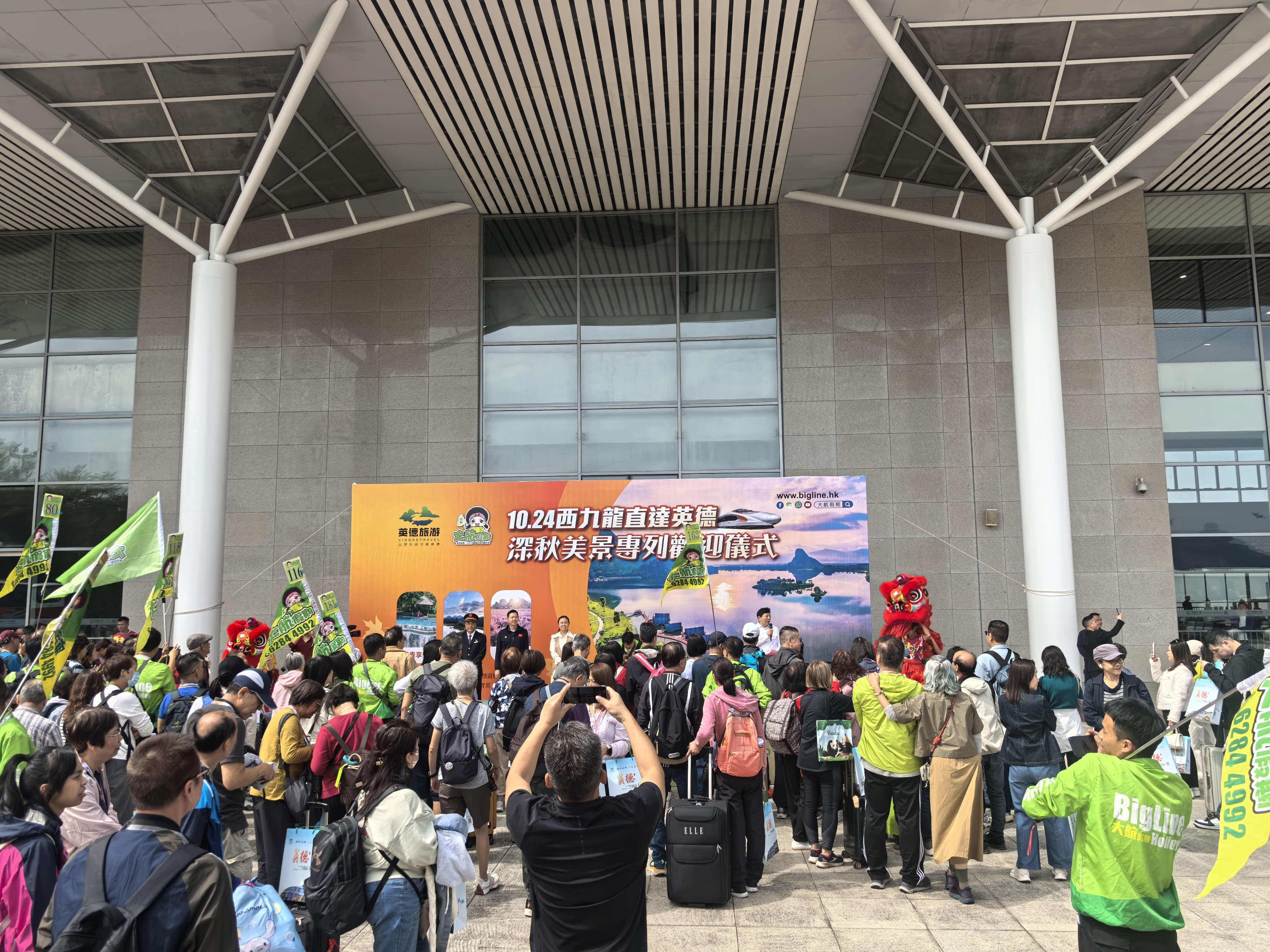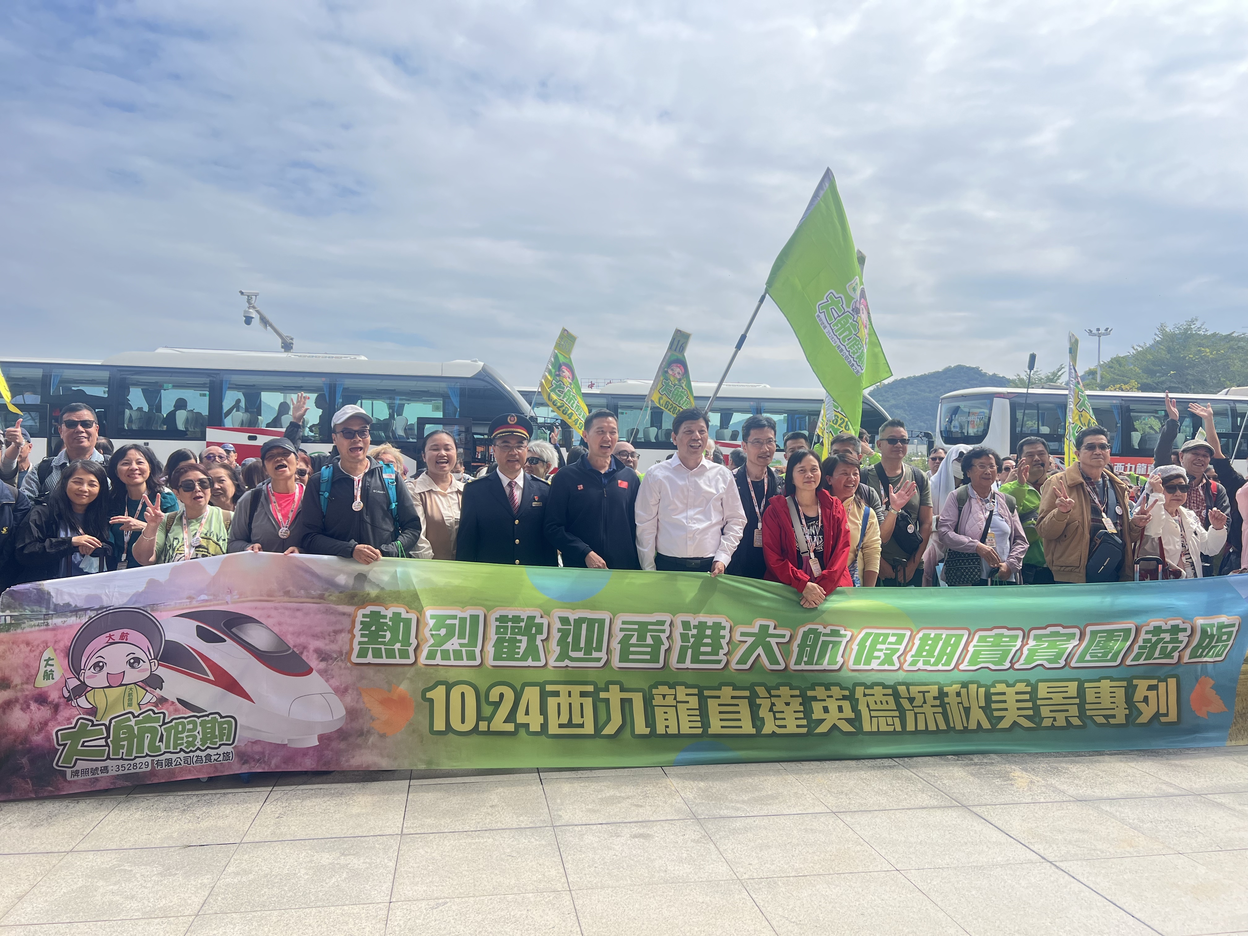 10月24日上昼11:37,伴跟着G9782次高铁专列的巩固泊岸,香港西九龙直达广东清远英德的深秋旅游专列奏凯抵达京广高铁英德西火车站。500余名香港旅客满怀期待走出车厢,将开启为期3天的秋日之旅。本次作为由清远市文化广电旅游体育局辅导,英德市文化广电旅游体育局与大航假期有限公司连合独揽,旨在以专列为纽带,深远粤港两地文旅疏导,展现英德深秋特有魔力。