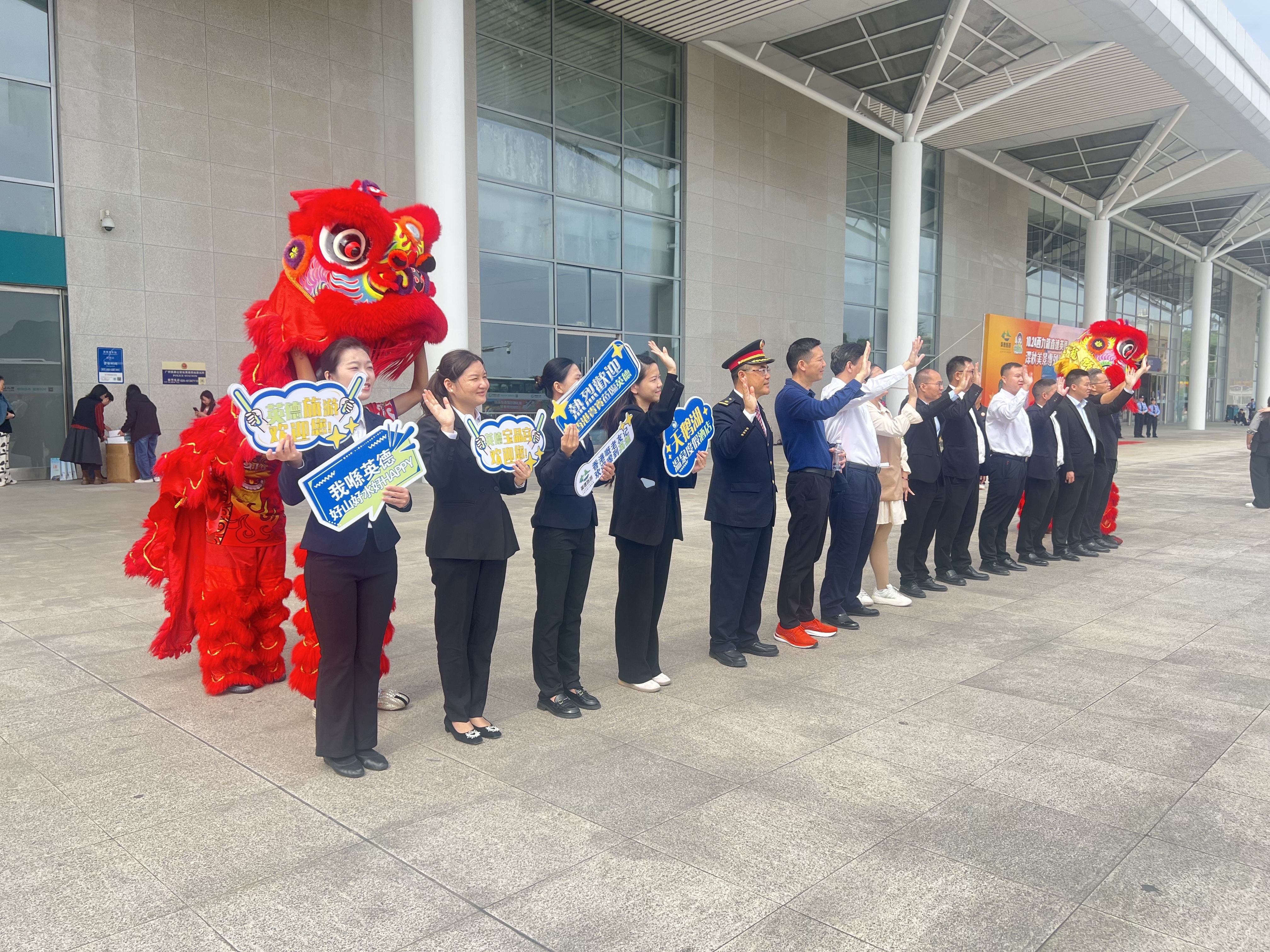 本日上昼的英德西高铁站充满浓郁的迎接氛围。舞狮队踏着欣喜饱读点摆动,灵动的雄狮为香港旅客奉上并肩前进的祈福;责任主说念主员手捏英德本性的伴手礼,逐个递到旅客手中,让人人刚落地便感受到英德的讲理。