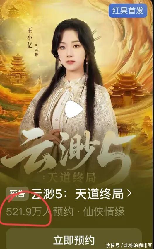 2.《云渺5:天谈结尾》 主演:王小亿 《云渺5》系列不错说是从第一部火到第五部,11月中旬已毕,11月末预约照旧高达400万了。当今预约数破521万。