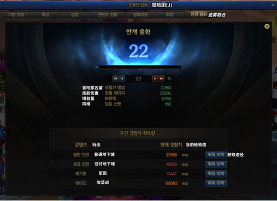 迷雾交融是一个新推出的冒险团养成系统,当玩家使用Lv115的变装进行重力之泉本色玩法时,不错获取每个玩法对应的迷雾交融训导值来擢升迷雾交融品级。迷雾交融可为玩家冒险团内系数达到115级的变装提供名望、妙技伤害、增益量以及四维上加成。