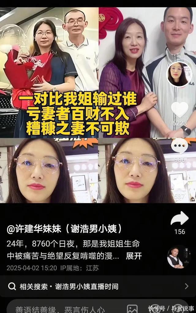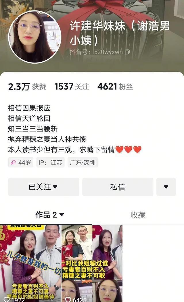 但是一位自称谢浩男小姨的网友也进行了发声。 对方默示我方是许建华的妹妹,也即是和谢浩男有着血统关联的亲小姨。