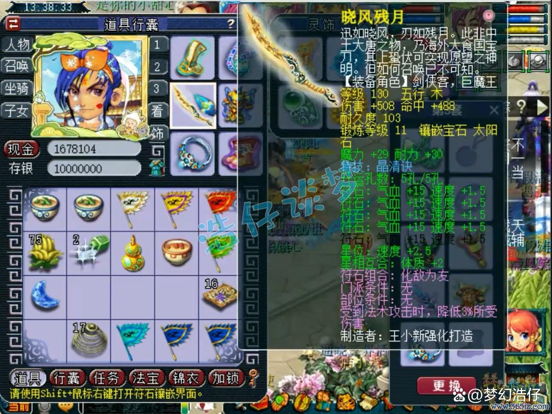 130级晶清诀火器,魔耐双加59,打了11锻太阳石!