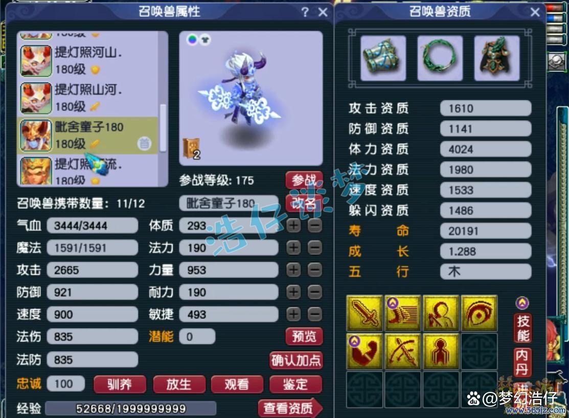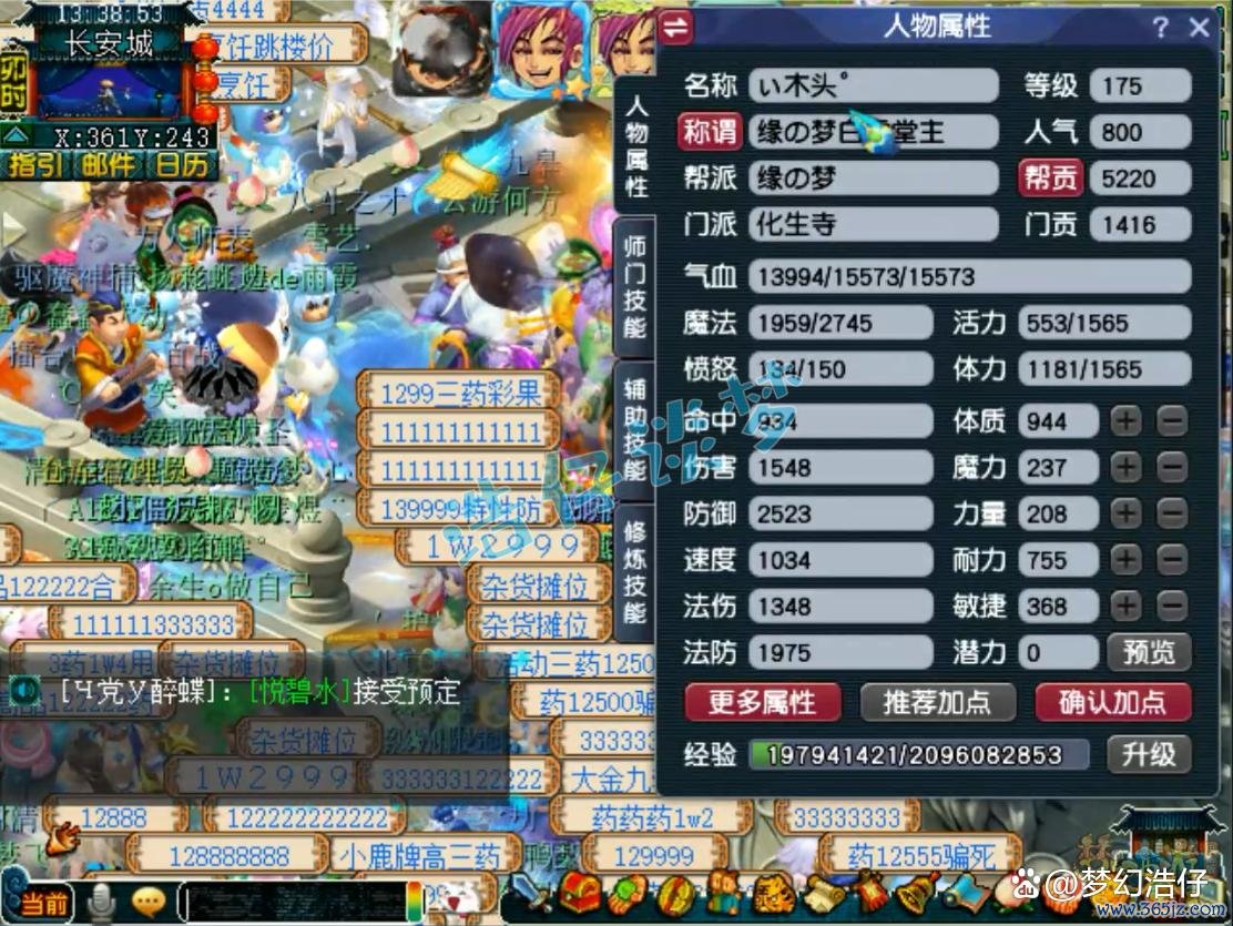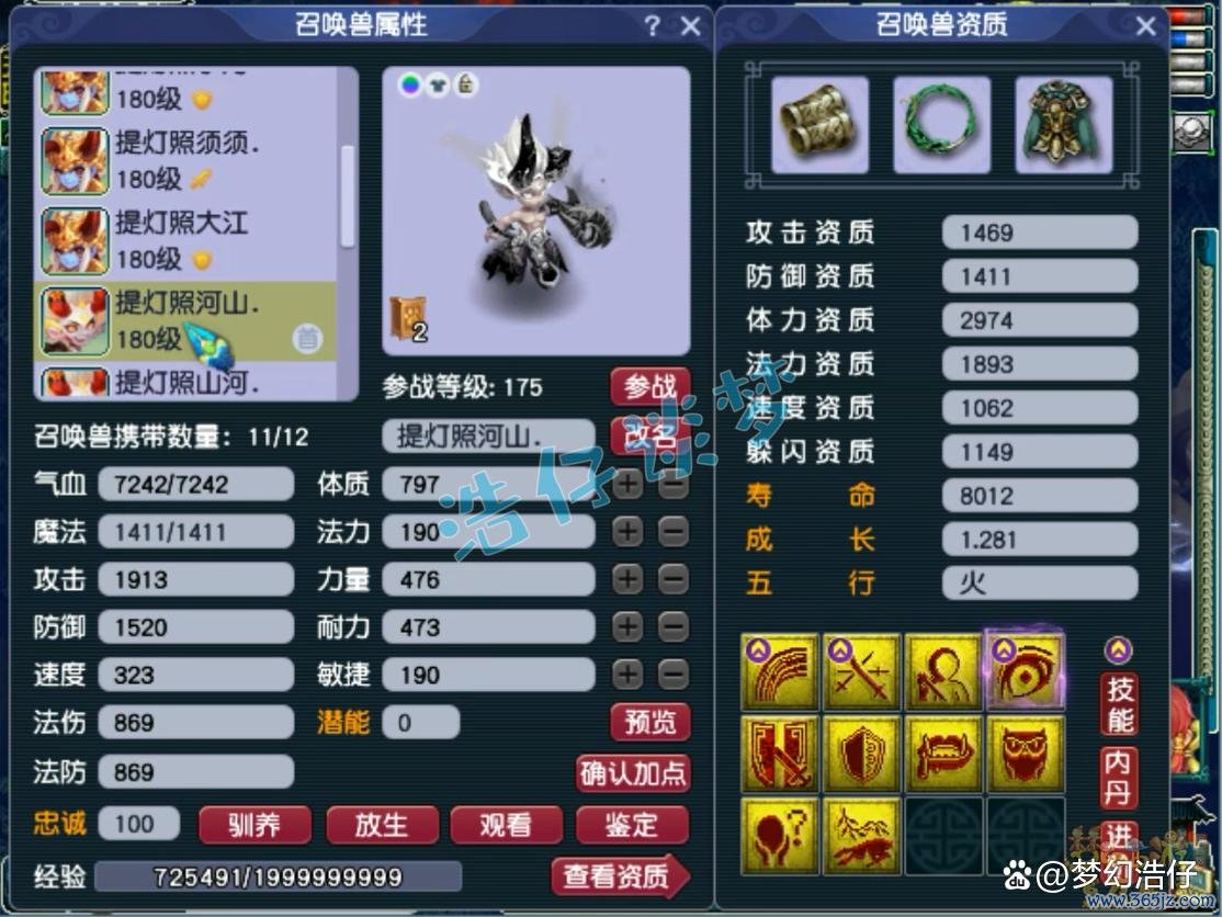 175级化生寺没打临时符的面板属性,打符之后法防能达到2000以上,抗性透澈!