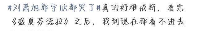 不得不说,《盛夏芬德拉》戒断确实很难,不仅是不雅众,就连男女主演们都曾坦言很难戒断,也因此刘萧旭和郭宇欣在完了的时代两边都哭红了眼。