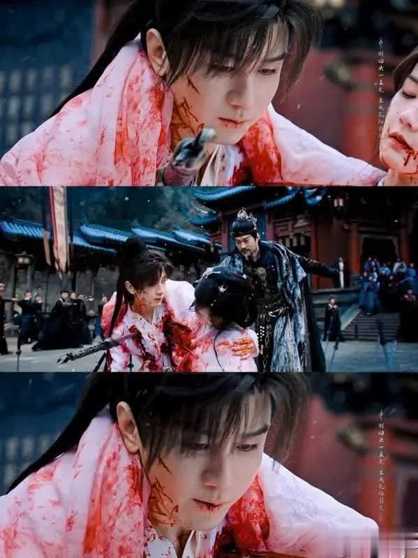 剧组为了打造「水墨染血」的田地,专门试了137种墨汁与朱砂合并,让白衣与血色如壁画般晕染开来。 这一幕不仅仅虐恋的激越,更是成毅以演技和刚烈力当前的武侠诗篇。