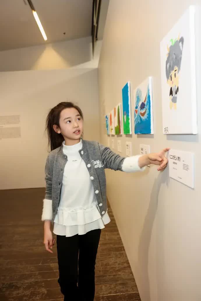 相片中,才9岁的小酒窝格外惹东说念主青睐,遗传了父母的高颜值,仪态出众。她扎着高马尾,身穿真挚衫搭配白色打底衫和玄色长裤,全体造型既先锋又新鲜。看展时,小酒窝发达专注的色彩格外动东说念主,一边赏玩一边先容作品,展现出超乎年龄的千里稳与懂事。