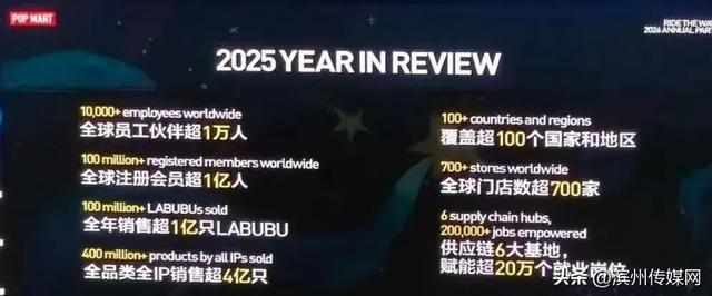 年会上还回来了泡泡玛特畴昔一年的年度数据,全球职工伙伴超1万东谈主、注册会员超 1 亿东谈主、LABUBU 全年销量超 1 亿只、全品类全 IP 居品销量超4亿只,业务覆盖 100+国度和地区、全球门店超700家、领有6大供应链基地并赋能超20万个业绩岗亭,同期对比2024财年与2025财年的饼图流露代表泡泡玛特的黄色板块彰着扩大,中枢品牌或自有IP营收占比显耀进步,举座展现了其全球化延伸、IP 运营适度、供应链能力及中枢业务的抓续增长态势。