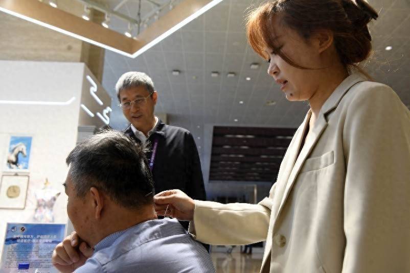展台前,针灸针、大小互异的铜罐、刮痧板与各色敷贴整都陈设,宛如一座水灵的微缩针灸博物馆,眩惑着中外不雅众容身围不雅。沈卫东正为一位受失眠困扰的体验者实行揿针疗法,只见他手抓一枚形似图钉的小型针具,精确瞄准体验者手腕穴位轻轻按压,针体便稳稳植入皮下。“这小小的揿针能抓续刺激穴位,调温暖血,融会经络,极度相宜慢性疾病调养和泛泛保健。”沈卫东一边操作一边训诲,体验者全程十分减弱,直言“只好渺小营业感”。
